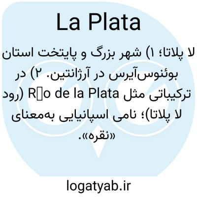 لا پلاتا؛ ۱) شهر بزرگ و پایتخت استان بوئنوس‌آیرس در آرژانتین. ۲) در ترکیباتی مثل Río de la Plata (رود لا پلاتا)؛ نامی اسپانیایی به‌معنای «نقره».