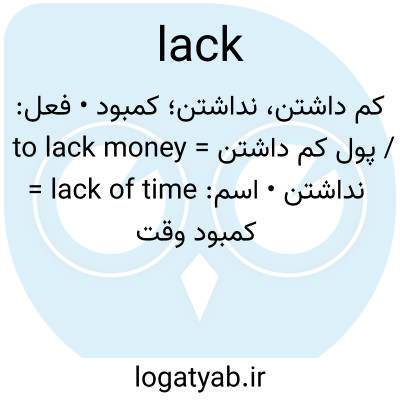 کم داشتن، نداشتن؛ کمبود • فعل: to lack money = پول کم داشتن / نداشتن • اسم: lack of time = کمبود وقت