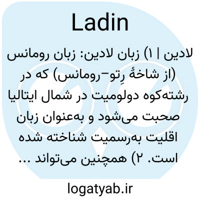 لادین | ۱) زبان لادین: زبان رومانس (از شاخهٔ رِتو–رومانس) که در رشته‌کوه دولومیت در شمال ایتالیا صحبت می‌شود و به‌عنوان زبان اقلیت به‌رسمیت شناخته شده است. ۲) همچنین می‌تواند به مردم و فرهنگ لادین اشاره کند.