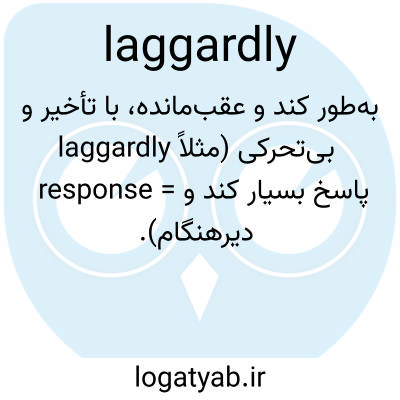 به‌طور کند و عقب‌مانده، با تأخیر و بی‌تحرکی (مثلاً laggardly response = پاسخ بسیار کند و دیرهنگام).