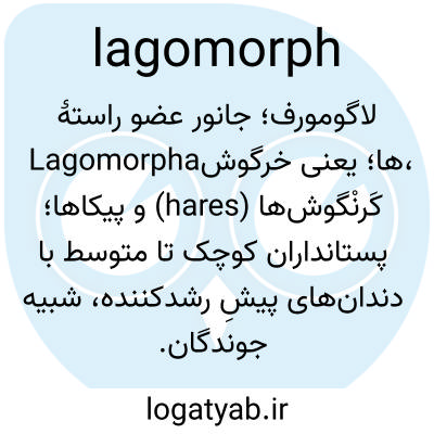 📌 هر عضوی از راسته خرگوشریختان (Lagomorpha)، شامل خرگوشهای صحرایی، خرگوشهای معمولی و پایکاها، که شبیه جوندگان است اما دو جفت دندان پیشین بالایی دارد.