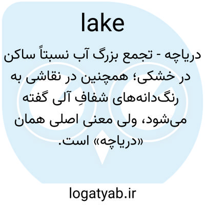 دریاچه - تجمع بزرگ آب نسبتاً ساکن در خشکی؛ همچنین در نقاشی به رنگ‌دانه‌های شفافِ آلی گفته می‌شود، ولی معنی اصلی همان «دریاچه» است.