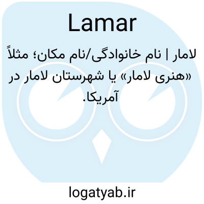 لامار | نام خانوادگی/نام مکان؛ مثلاً «هنری لامار» یا شهرستان لامار در آمریکا.