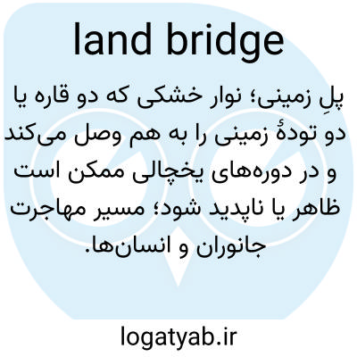 📌 زمینشناسی، یک نوار واقعی یا فرضی از خشکی، در معرض فرورفتن در آب، که خشکیهای قارهای مجاور را به هم متصل میکند و به عنوان مسیری برای پراکندگی گیاهان و جانوران عمل میکند.