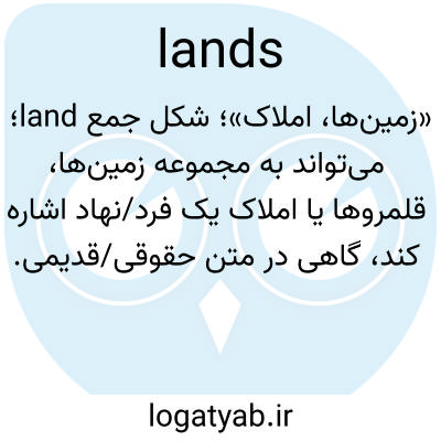 «زمین‌ها، املاک»؛ شکل جمع land؛ می‌تواند به مجموعه زمین‌ها، قلمروها یا املاک یک فرد/نهاد اشاره کند، گاهی در متن حقوقی/قدیمی.