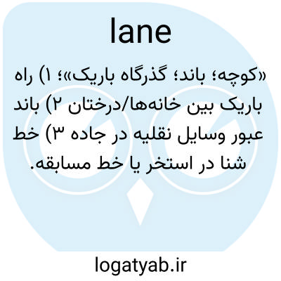 «کوچه؛ باند؛ گذرگاه باریک»؛ ۱) راه باریک بین خانه‌ها/درختان ۲) باند عبور وسایل نقلیه در جاده ۳) خط شنا در استخر یا خط مسابقه.