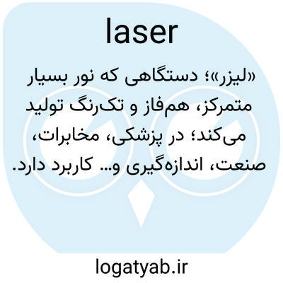 📌 دستگاهی که با برانگیختن اتمها به سطح انرژی بالاتر و تابش هم فاز انرژی آنها، پرتوی نوری تقریباً موازی، تقریباً تکرنگ و همدوس تولید میکند.