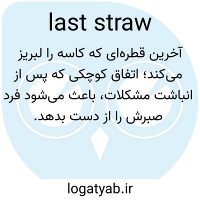 📌 آخرین مورد از یک سلسله ناراحتی‌ها، حوادث، اظهارات و غیره که منجر به از دست دادن صبر، فاجعه و غیره می‌شود.