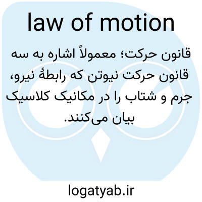 📌 هر یک از سه قانون مکانیک کلاسیک، یا قانونی که میگوید یک جسم در حالت سکون یا در حرکت با سرعت ثابت باقی میماند مگر اینکه نیروی خارجی بر جسم وارد شود. قانون اول حرکت، قانونی که میگوید مجموع نیروهای وارد بر یک جسم برابر است با حاصلضرب جرم جسم در شتاب تولید شده توسط نیروها، با حرکت در جهت برآیند نیروها. قانون دوم حرکت، یا قانونی که میگوید برای هر نیرویی که بر یک جسم وارد میشود، جسم نیرویی با بزرگی برابر و جهت مخالف در امتداد همان خط عمل نیروی اصلی اعمال میکند. قانون سوم حرکت، یا قانون عمل و عکسالعمل.