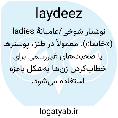 نوشتار شوخی/عامیانهٔ ladies («خانما»). معمولاً در طنز، پوسترها یا صحبت‌های غیررسمی برای خطاب‌کردن زن‌ها به‌شکل بامزه استفاده می‌شود.