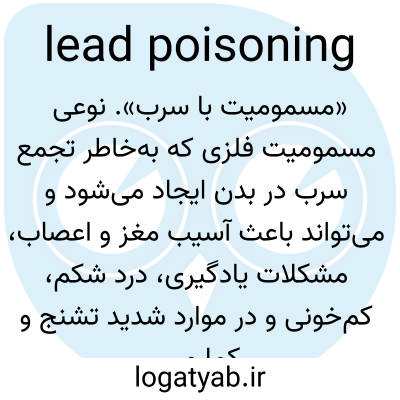 📌 یک وضعیت سمی که در اثر بلع، استنشاق یا جذب پوستی سرب یا ترکیبات سرب ایجاد میشود و منجر به علائم مختلف وابسته به دوز از جمله کمخونی، حالت تهوع، ضعف عضلانی، گیجی، نابینایی و کما میشود.