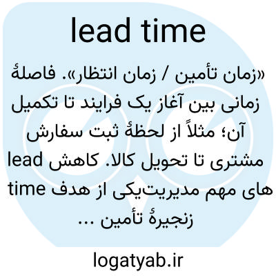 «زمان تأمین / زمان انتظار». فاصلهٔ زمانی بین آغاز یک فرایند تا تکمیل آن؛ مثلاً از لحظهٔ ثبت سفارش مشتری تا تحویل کالا. کاهش lead time یکی از هدف‌های مهم مدیریت زنجیرهٔ تأمین است.