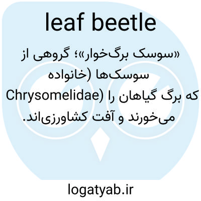 📌 هر یک از سوسکهای متعدد و اغلب با رنگ روشن از خانواده Chrysomelidae که از برگ گیاهان تغذیه میکنند و لاروهای آنها ریشه، ساقه و برگها را آلوده میکنند.