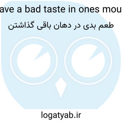 📌 تأثیر بدی روی کسی باقی بگذار، همانطور که در عبارت «بحث طعم بدی در دهانم گذاشت، بنابراین بعد از آن از صحبت کردن در مورد سیاست خودداری کردم». این عبارت طعم بد باقی مانده از مصرف غذای تلخ یا ناخوشایند را به یک تجربه ناخوشایند تبدیل می‌کند. [اواسط دهه ۱۸۰۰]