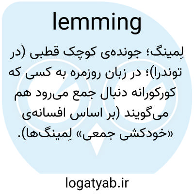 📌 هر یک از جوندگان کوچک و موشمانند مختلف از چندین جنس، از جمله لموس، میوپوس و دیکروستونیکس، از مناطق شمالی دوردست، مانند لموس لموس، از نروژ، سوئد و غیره، که به خاطر مهاجرتهای دستهجمعی دورهای که گاهی اوقات شامل عبور از پهنههای آبی میشود، شناخته شدهاند. غرق شدنهای تصادفی که در طول چنین گذرگاههایی رخ داده است، افسانه خودکشیهای دستهجمعی را در میان لمینگهای ظاهراً دیوانهوار که از صخرهها به دریا میپرند، دامن زده است.