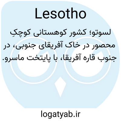 📌 پادشاهی در جنوب آفریقا، احاطه شده توسط آفریقای جنوبی: قبلاً تحتالحمایه بریتانیا بود؛ در سال ۱۹۶۶ استقلال یافت؛ عضو کشورهای مشترکالمنافع. ۱۱۷۱۶ مایل مربع (۳۰۳۴۴ کیلومتر مربع). ماسرو.