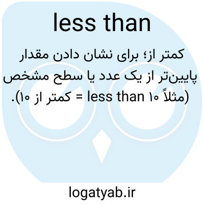 کمتر از؛ برای نشان دادن مقدار پایین‌تر از یک عدد یا سطح مشخص (مثلاً less than 10 = کمتر از ۱۰).