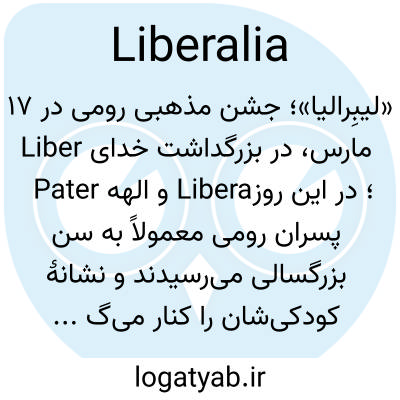 «لیبِرالیا»؛ جشن مذهبی رومی در ۱۷ مارس، در بزرگداشت خدای Liber Pater و الهه Libera؛ در این روز پسران رومی معمولاً به سن بزرگسالی می‌رسیدند و نشانهٔ کودکی‌شان را کنار می‌گذاشتند.