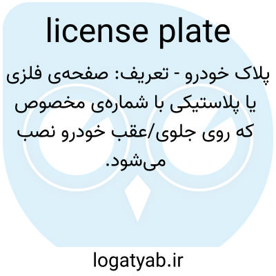 پلاک خودرو - تعریف: صفحه‌ی فلزی یا پلاستیکی با شماره‌ی مخصوص که روی جلوی/عقب خودرو نصب می‌شود.