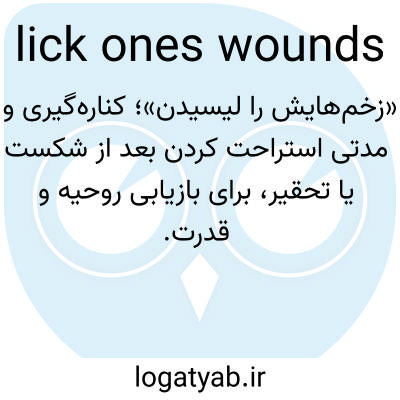 📌 بهبودی از جراحات یا احساسات جریحهدار شده. برای مثال، آنها در مناظره به شدت کتک خوردند و با ناراحتی به خانه رفتند تا زخمهایشان را لیس بزنند. این عبارت به رفتار حیوانات هنگام زخمی شدن اشاره دارد. در ابتدا به معنای لیسیدن خود به طور کامل یا تمیز بوده و قدمت آن به اواسط دهه 1500 میلادی برمیگردد.
