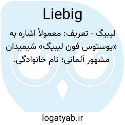 لیبیگ - تعریف: معمولاً اشاره به «یوستوس فون لیبیگ» شیمیدان مشهور آلمانی؛ نام خانوادگی.