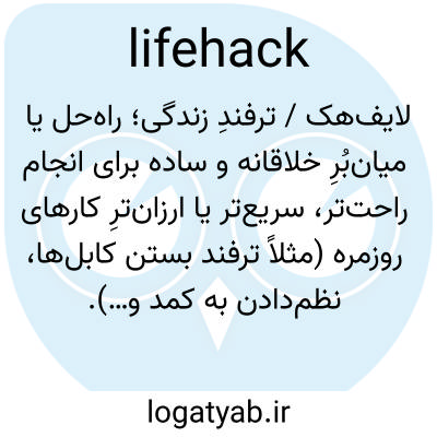 لایف‌هک / ترفندِ زندگی؛ راه‌حل یا میان‌بُرِ خلاقانه و ساده برای انجام راحت‌تر، سریع‌تر یا ارزان‌ترِ کارهای روزمره (مثلاً ترفند بستن کابل‌ها، نظم‌دادن به کمد و…).