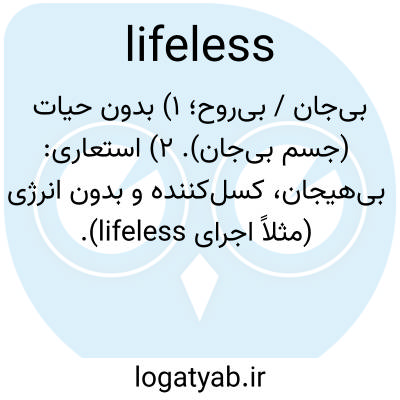 بی‌جان / بی‌روح؛ ۱) بدون حیات (جسم بی‌جان). ۲) استعاری: بی‌هیجان، کسل‌کننده و بدون انرژی (مثلاً اجرای lifeless).