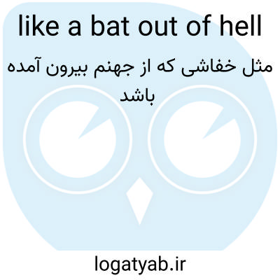 📌 حرکت بسیار سریع، مانند عبارت «او مانند خفاشی که از جهنم بیرون آمده در خیابان دوید». این عبارت احتمالاً به حرکت سریع و سریع خفاش‌ها اشاره دارد و چارلز ارل فانک این نظریه را مطرح کرد که از نوری که ممکن است از آتش جهنم ساطع شود، اجتناب می‌کنند. [حدود ۱۹۰۰] برای مترادف، به «مانند رعد و برق روغنی» مراجعه کنید.