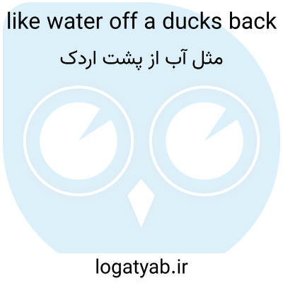 📌 به راحتی و بدون هیچ تأثیر ظاهری. برای مثال، نقدهای تند و تیز مانند آب از پشت اردک از روی او غلتیدند. این عبارت به این واقعیت اشاره دارد که پرهای اردک آب میریزند. [اوایل دهه ۱۸۰۰]