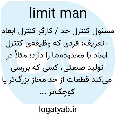 مسئول کنترل حد / کارگر کنترل ابعاد - تعریف: فردی که وظیفه‌ی کنترل ابعاد یا محدوده‌ها را دارد؛ مثلاً در تولید صنعتی، کسی که بررسی می‌کند قطعات از حد مجاز بزرگ‌تر یا کوچک‌تر نباشند.
