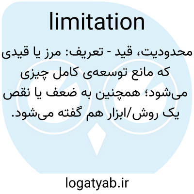 محدودیت، قید - تعریف: مرز یا قیدی که مانع توسعه‌ی کامل چیزی می‌شود؛ همچنین به ضعف یا نقص یک روش/ابزار هم گفته می‌شود.
