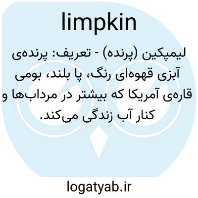 لیمپکین (پرنده) - تعریف: پرنده‌ی آبزی قهوه‌ای رنگ، پا بلند، بومی قاره‌ی آمریکا که بیشتر در مرداب‌ها و کنار آب زندگی می‌کند.