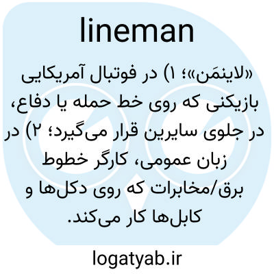 «لاینمَن»؛ ۱) در فوتبال آمریکایی بازیکنی که روی خط حمله یا دفاع، در جلوی سایرین قرار می‌گیرد؛ ۲) در زبان عمومی، کارگر خطوط برق/مخابرات که روی دکل‌ها و کابل‌ها کار می‌کند.