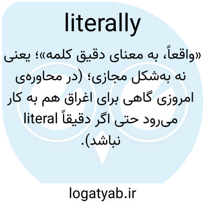 «واقعاً، به معنای دقیق کلمه»؛ یعنی نه به‌شکل مجازی؛ (در محاوره‌ی امروزی گاهی برای اغراق هم به کار می‌رود حتی اگر دقیقاً literal نباشد).