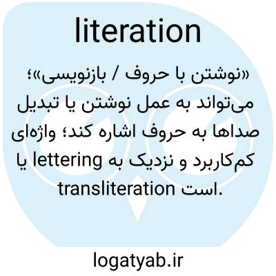 «نوشتن با حروف / بازنویسی»؛ می‌تواند به عمل نوشتن یا تبدیل صداها به حروف اشاره کند؛ واژه‌ای کم‌کاربرد و نزدیک به lettering یا transliteration است.