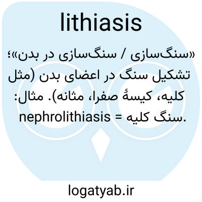 سنگ کلیه (Lithiasis)، اسم. یک بیماری بدنی که در آن اسید اوریک به صورت سنگ یا شن در مجاری ادراری رسوب میکند.
