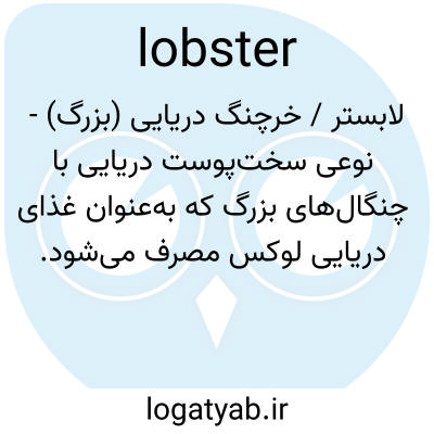 لابستر / خرچنگ دریایی (بزرگ) - نوعی سخت‌پوست دریایی با چنگال‌های بزرگ که به‌عنوان غذای دریایی لوکس مصرف می‌شود.