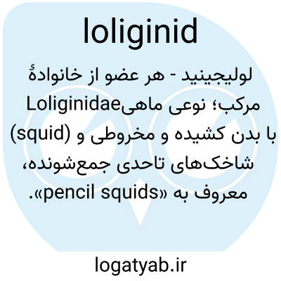 📌 هر عضوی از خانوادهی ماهی مرکب Loliginidae که بدنی مخروطی کشیده و شاخکهایی با قابلیت جمع شدن نسبی دارد.