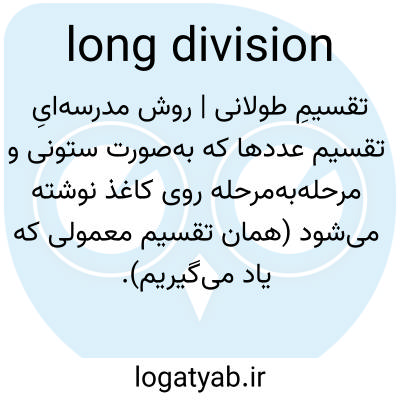 تقسیمِ طولانی | روش مدرسه‌ایِ تقسیم عددها که به‌صورت ستونی و مرحله‌به‌مرحله روی کاغذ نوشته می‌شود (همان تقسیم معمولی که یاد می‌گیریم).