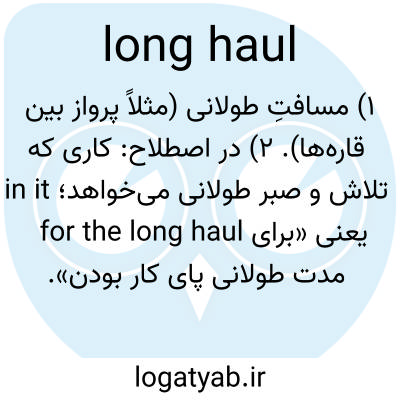 ۱) مسافتِ طولانی (مثلاً پرواز بین قاره‌ها). ۲) در اصطلاح: کاری که تلاش و صبر طولانی می‌خواهد؛ in it for the long haul یعنی «برای مدت طولانی پای کار بودن».