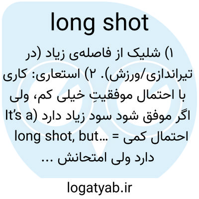 ۱) شلیک از فاصله‌ی زیاد (در تیراندازی/ورزش). ۲) استعاری: کاری با احتمال موفقیتِ خیلی کم، ولی اگر موفق شود سود زیاد دارد (It’s a long shot, but… = احتمال کمی دارد ولی امتحانش می‌ارزد).