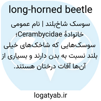 📌 هر یک از سوسکهای متعدد و اغلب به رنگ روشن از خانوادهی Cerambycidae، معمولاً با شاخکهای بلند که لارو آنها چوب درختان زنده یا در حال پوسیدن را سوراخ میکند.