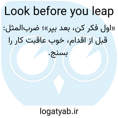 «اول فکر کن، بعد بپر»؛ ضرب‌المثل: قبل از اقدام، خوب عاقبت کار را بسنج.