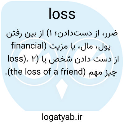 ضرر، از دست‌دادن؛ ۱) از بین رفتن پول، مال، یا مزیت (financial loss). ۲) از دست دادن شخص یا چیز مهم (the loss of a friend).