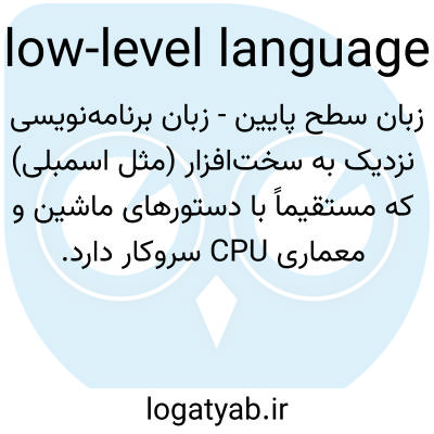 زبان سطح پایین - زبان برنامه‌نویسی نزدیک به سخت‌افزار (مثل اسمبلی) که مستقیماً با دستورهای ماشین و معماری CPU سروکار دارد.