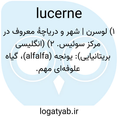۱) لوسرن | شهر و دریاچهٔ معروف در مرکز سوئیس. ۲) (انگلیسی بریتانیایی): یونجه (alfalfa)، گیاه علوفه‌ای مهم.