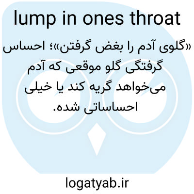 📌 احساس گرفتگی در گلو ناشی از احساسات، مانند عبارت «مادر عروس بغضی در گلویش داشت». این عبارت، حس تورم فیزیکی را به احساس تنگی ناشی از احساسات قوی تشبیه میکند. [اواسط دهه ۱۸۰۰]