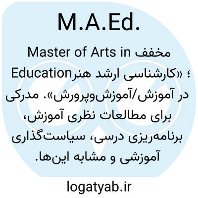مخفف Master of Arts in Education؛ «کارشناسی ارشد هنر در آموزش/آموزش‌وپرورش». مدرکی برای مطالعات نظری آموزش، برنامه‌ریزی درسی، سیاست‌گذاری آموزشی و مشابه این‌ها.