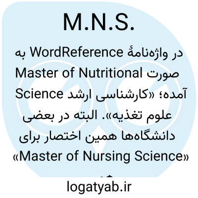 در واژه‌نامهٔ WordReference به صورت Master of Nutritional Science آمده؛ «کارشناسی ارشد علوم تغذیه». البته در بعضی دانشگاه‌ها همین اختصار برای «Master of Nursing Science» هم استفاده می‌شود، اما اینجا به معنای علوم تغذیه ثبت شده است.