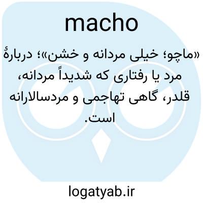 «ماچو؛ خیلی مردانه و خشن»؛ دربارهٔ مرد یا رفتاری که شدیداً مردانه، قلدر، گاهی تهاجمی و مردسالارانه است.